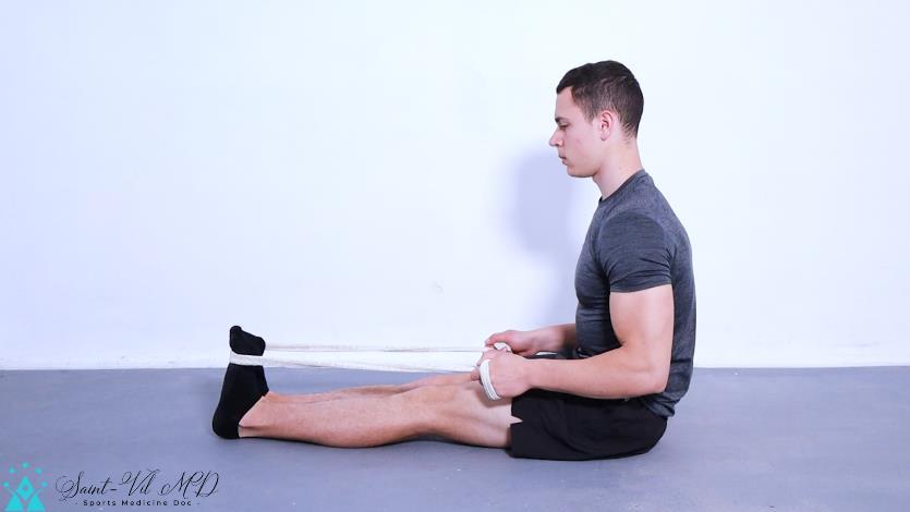 Long sitting calf stretch with strap