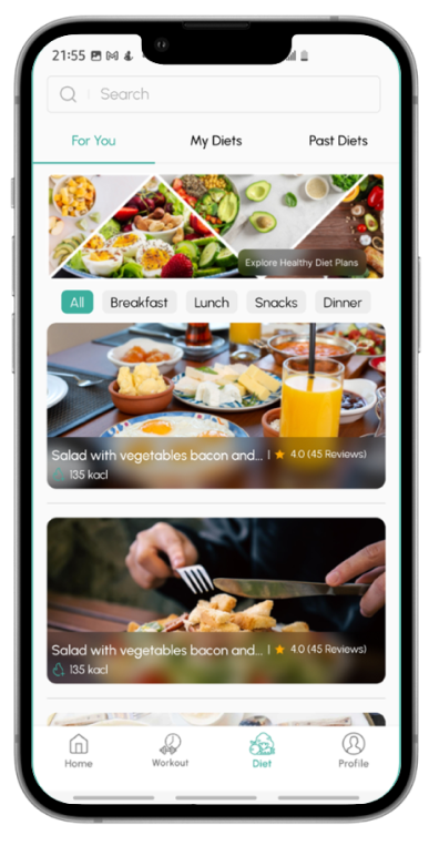 AUsers get personalized exercise plans curated by top fitness professionals.